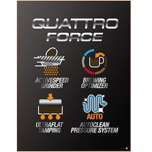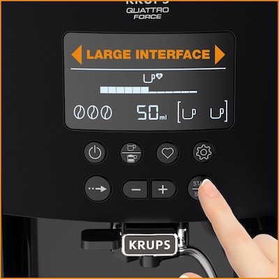 Automata eszpresszógép, mely könnyedén biztosítja a kiváló minőséget, olyan eredményeket kínál minden kedvenc italánál, mintha barista készítette volna – a gazdag ristrettótól és hosszú kávétól az ellenállhatatlanul krémes cappuccinóig. Az egyszerűbb tejadagoló edény karnyújtásnyira hozza a tökéletes cappuccinót. Az extra nagy LCD képernyő kiváló felhasználóbarát kávékészítési élményt kínál. A KRUPS Quattro Force rendszer különös kávéízt varázsol az optimális daráláshoz, tökéletes passzírozáshoz, készítéshez és automatikus tisztításhoz igazított technológiának köszönhetően.